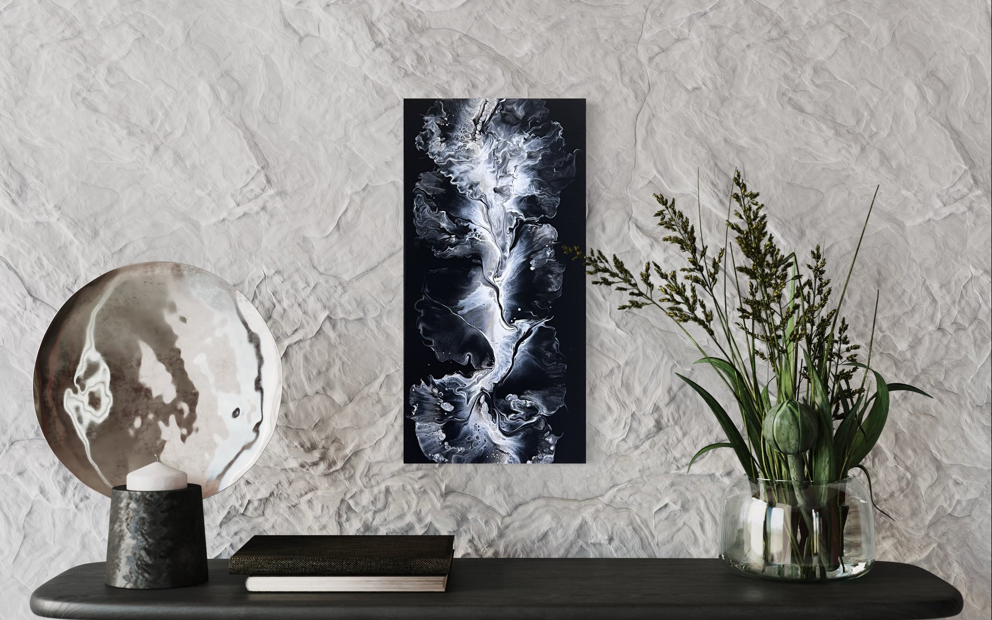 Colors: Black Base layered with titanium white and iridescent silver.